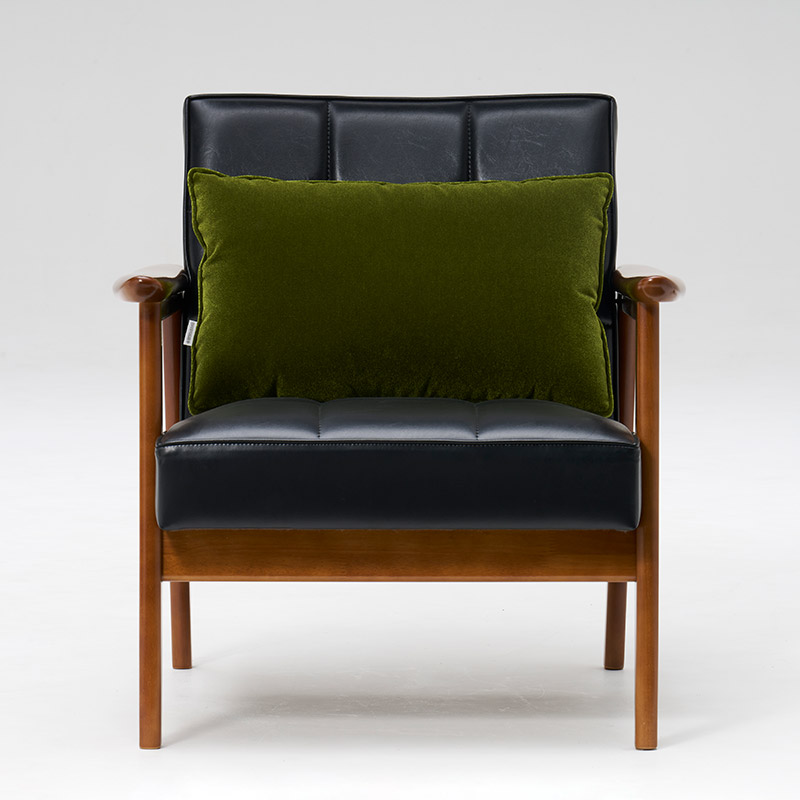50×30cmの横長クッション。Kチェアやロビーチェアの使用時に腰の空間を埋めて腰受けをよくするためのクッションです。特殊な捲縮(けんしゅく)加工を施した弾力性の高い綿を使用しています。