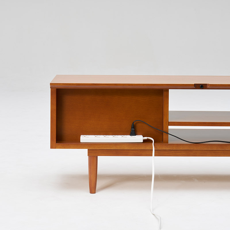 大型テレビ対応のローボード。シンプルなデザインで、お部屋の中で主張し過ぎません。背面には配線コードたまりスペースがある機能的なアイテムです。