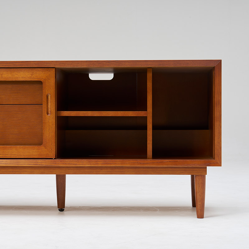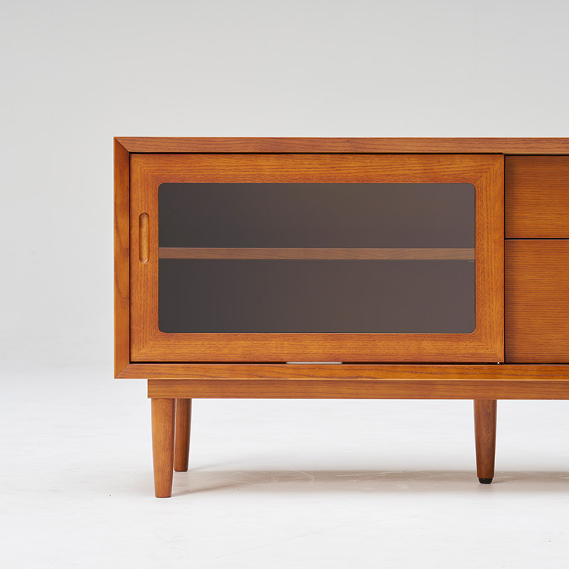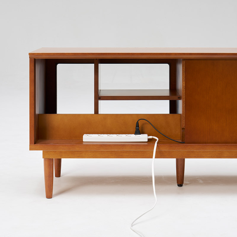 大型テレビ対応のローボード。シンプルなデザインで、お部屋の中で主張し過ぎません。背面には配線コードたまりスペースがある機能的なアイテムです。脚を外して、高さ403mmでもお使いいただけます。
